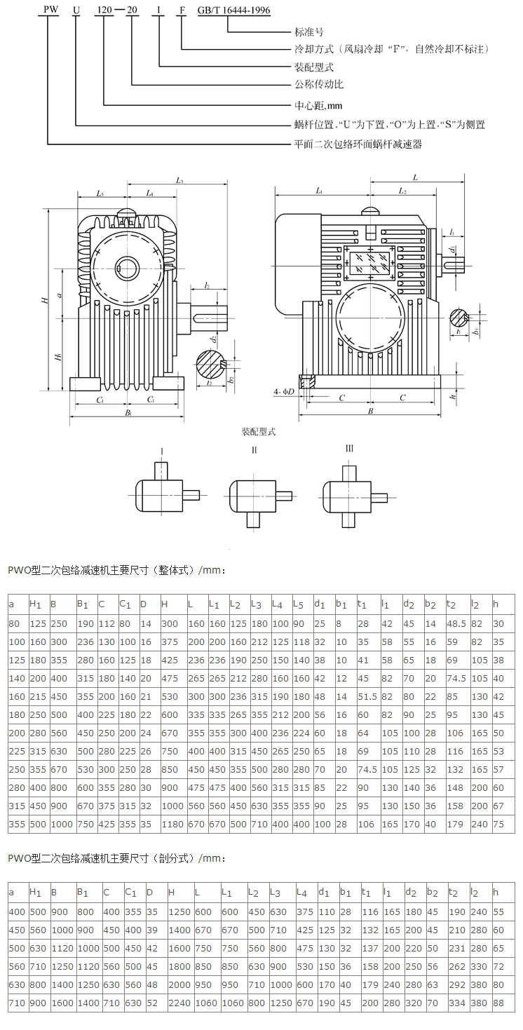 b、PWO型—蝸桿在蝸輪之上平面二次包絡(luò)環(huán)面蝸桿減速器。