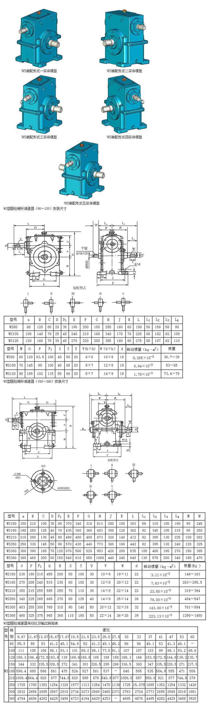 WS型圓柱蝸桿減速器為一級(jí)傳動(dòng)的圓柱蝸桿減速器。其特點(diǎn)是傳動(dòng)比大、結(jié)構(gòu)緊湊、體積小、噪音低、運(yùn)行穩(wěn)定并具有良好的自鎖性。